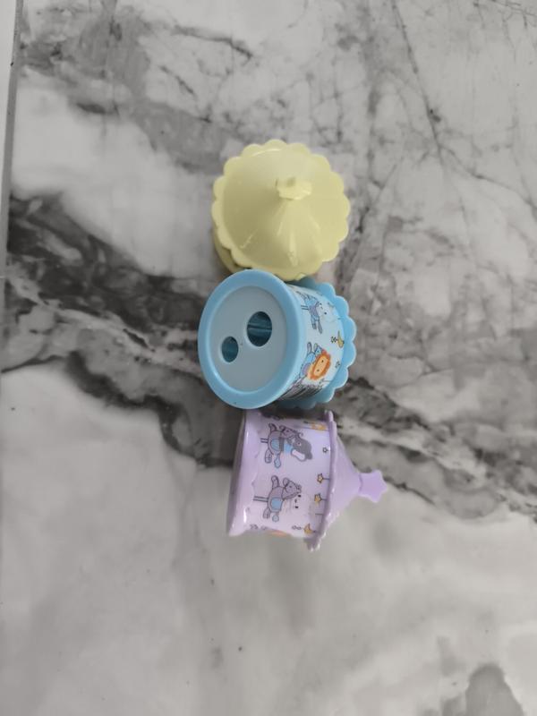 Тип - точилки; Материал корпуса – пластик; Материал лезвия – металл; Форма – карусель; Особенность – двойная; Контейнер – есть; Вид – 4 цвета; Тип – ручная; Размер упаковки: 18.5 см × 18.5 см × 10.5 см