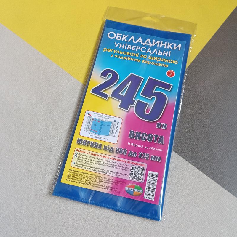 Обложки универсальные высотой 245 мм. полимер набор 3 штуки 200 мкм.