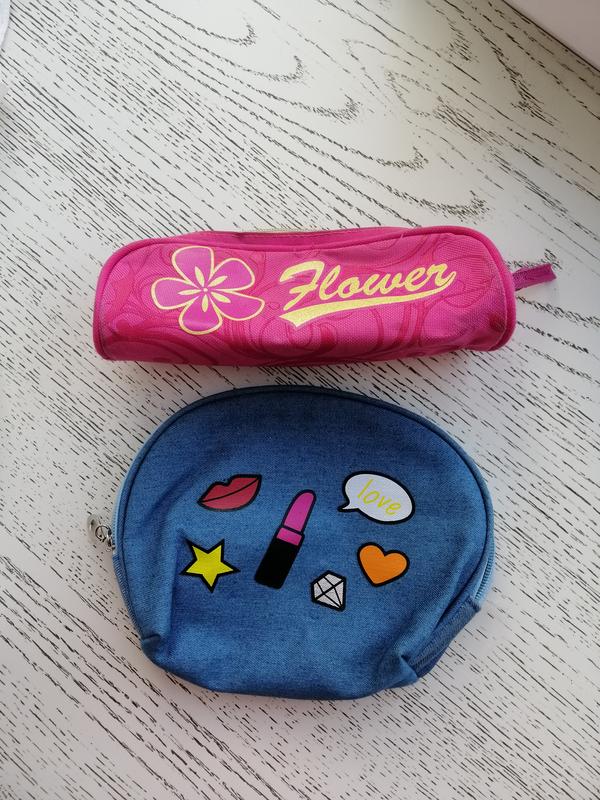 Два тканинчатих пенади для дівчинки. Рожевий був в ктростквпнні, стан на фото. Синій пенал-косметичка новий. Ціна за два 90 грн