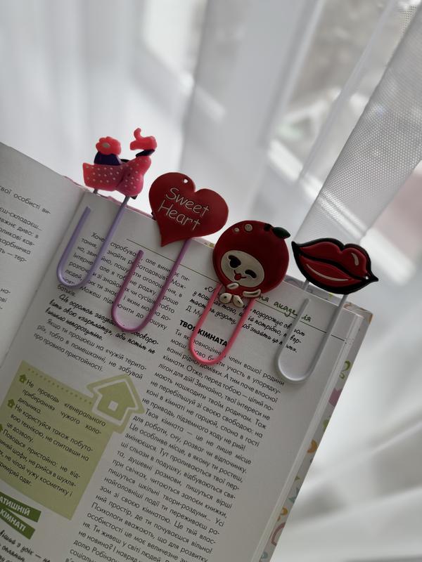 Продам скрепки/закладки большого размера для книг/блокнотов. 4 штуки Стоимость каждой 20 грн Если все заберете, то за 60 грн отдам В хорошем состоянии, удобны в использовании. Подойдут для девочек, а также дорогих пани, любящих милые аксессуары. По дополнительной информации пишите в сообщения.
