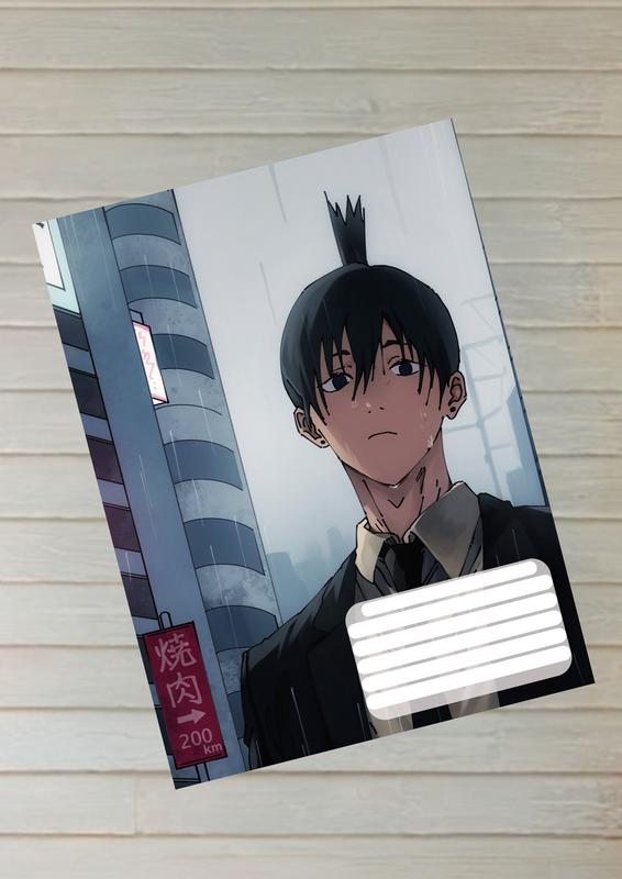 Тетрадь человек-бензопила chainsaw man на скобе 18 листов клетка