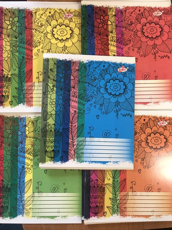 серия яркие цвета Тетрадь 12 листов в клеточку, изготовлена отечественным производителем на офсетной бумаге Котлас плотностью 55 г/м² с белизной страницы 100%. Хорошо видимые линии и красные поля листов. Глянцевая обложка, плотностью 200г/м², раскрашена нетоксичными импортными красителями использование в учебных заведениях Украины разрешается