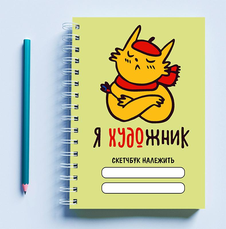 Скетчбук (sketchbook) для рисования с принтом "кіт: я художник" (салатовий фон)