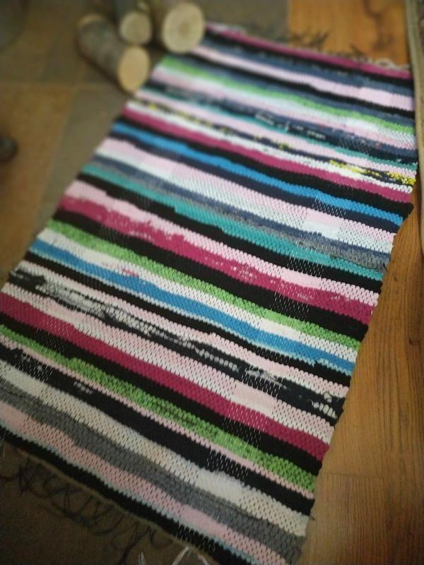 Тканный текстильный коврик.Вся работа выполняется вручную на ткацком станке. Разноцветный радостный кусочек в доме.