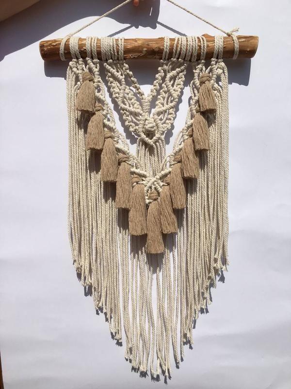 Авторское панно с кистями. 100% хлопок, в натуральном цвете, кисти в цвете какао 🧡 . Невероятно красиво выглядит в интерьере. . Размер: коряга - 38 см, длина - 62 см. .