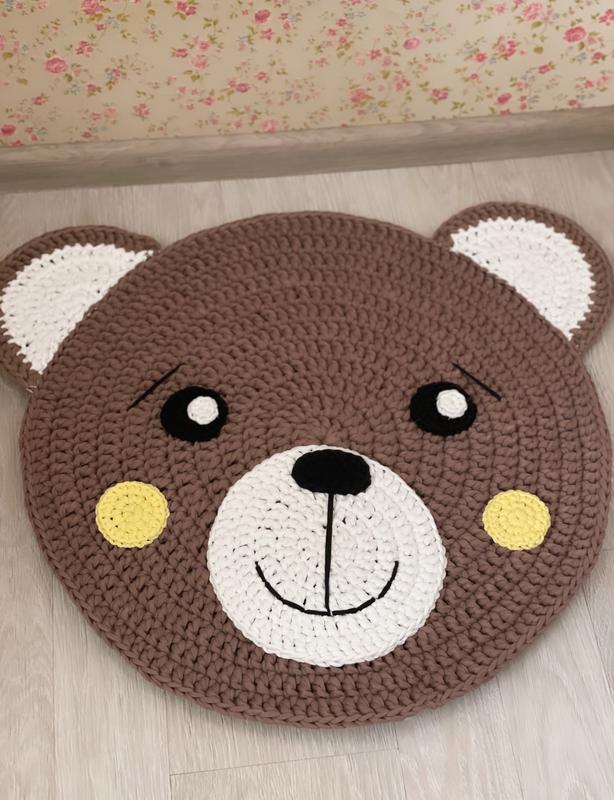 Коврик- Мишка в детскую комнату связан из натуральных Эко материалов 100% хлопок, абсолютно безвреден. Украсит интерьер детской комнаты. Рекомендована стирка в стиральной машине 40 С. Каждый элемент коврика связан вручную, все детали прочно пришиты, диаметр 70 см. Коврик в наличии!!!