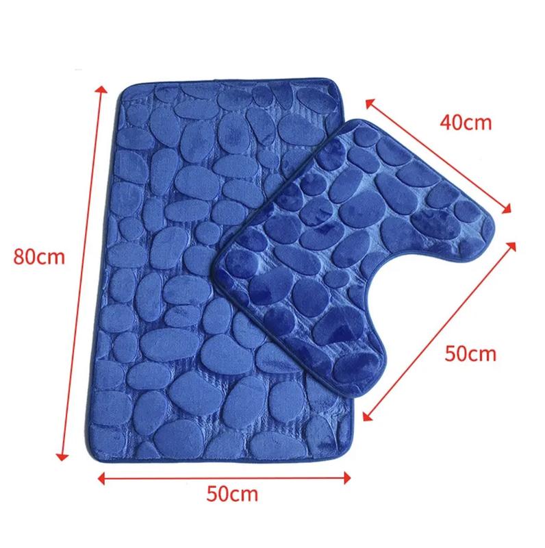 Набор ковриков в ванную комнату. впитывающие Имитация камня. цвет синий размеры на фото
