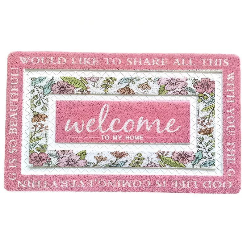 Сделайте вход в ваш дом по-настоящему дружелюбным и уютным с первого шага. Этот коврик не только защитит ваш дом от уличной грязи, но и будет каждый раз встречать вас и ваших гостей теплыми словами. Дизайн изделия сочетает практичность и эстетику: центральная надпись "Welcome to my home" обрамлен нежным узором из полевых цветов и листьев. Изюминкой модели является вдохновляющая цитата по периметру, что добавляет положительного настроения. Характеристики придверного коврика, грязезащитного покрытия и коврика под двери: Тип изделия: коврик придверный, грязезащитный; Материал: ПВХ (поливинилхлорид); Размер (ДхШ): 60 х 40 см; Вес: 0,500 кг; Декор: надпись Welcome, цветочный орнамент, текстовый принт по краю; Форма: прямоугольная; Назначение: для прихожей, коридора, входа в дом; Особенности: легко моется, задерживает грязь, долговечный материал. Комплектация: Коврик - 1 шт Изготовлен из прочного ПВХ, коврик устойчив к износу, влаге и грязи. Его пористая структура эффективно задерживает песок и пыль с обуви, оставляя пол чистым. Ухаживать за ним очень просто -- достаточно встряхнуть или промыть водой. Универсальный размер 60х40 см идеально подходит для стандартных входных дверей квартиры или дома.