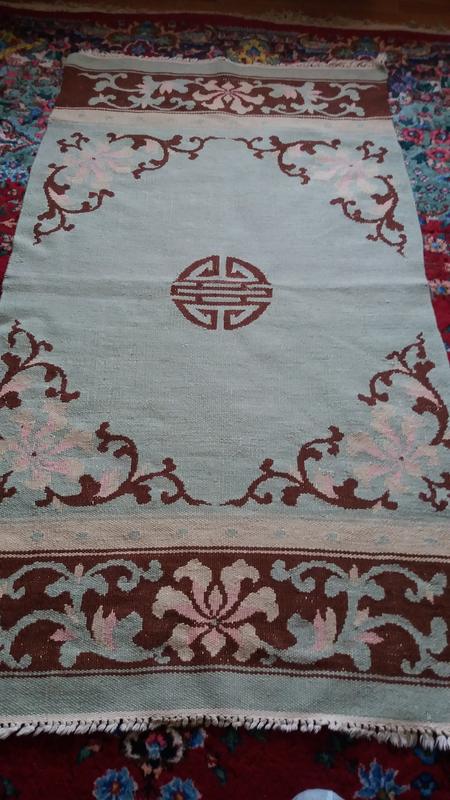 Два коврики шерстяных шириной 91 см, длиной 1.80 см. Один новый, другой в идеальном состоянии. Стоимость одного 1300 грн. Наяву основной цвет коврика - зеленый более яркий.