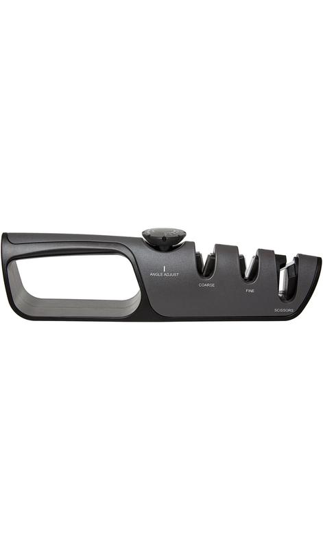 Продукция Risam Sharpeners отличается доступными ценами и хорошим качеством материалов, используемых в производстве. Risam Sharpeners предлагает покупателю широкий выбор: - Компактных электро-точилок и портативных точилок для кухонных ножей. - Классических мусатов для исправления неравномерности режущей кромки. - Легких портативных точилок для правки и заточки режущей кромки ножа в полевых условиях. Настольное точило для ножей и ножниц. Угол заточки можно изменять при помощи специального барабанчика. Для удобства на одной из поверхностей точила указаны рекомендуемые углы для разных видов ножей.