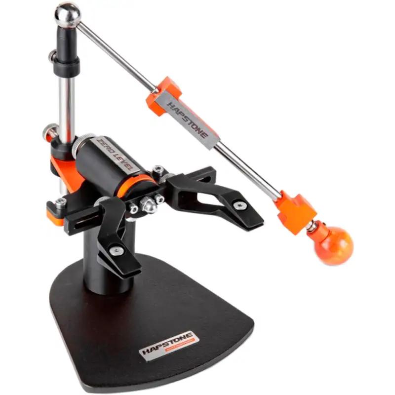 Точильная система Hapstone RS Точильные системы Hapstone разрабатывались для того, чтобы обеспечить максимально точную заточку режущей кромки любого ножа, независимо от его размеров, длины клинка и вида стали. Основа системы массивная, стальная, ножки дополнены резиновыми накладками – таким образом устройство не скользит по столу во время рабочего процесса. Легкая горизонтальная штанга несет на себе универсальный держатель камней и место для монтажа цифрового угломера, управляется она удобной деревянной ручкой. Муфта точной корректировки угла вращается очень плавно. Шарнирный узел оснащен линейным подшипником, минимизирующим трение и обеспечивающим ровное скольжение штанги. Есть крючок для парковки. Система очень вариативна, в зависимости от модели, поддерживает столик для заточки ножниц, адаптер для линзообразной заточки и другие аксессуары. Hapstone RS – лучшая система заточки ножей, разработанная украинской командой Hapstone, которая поразит вас своей высокой эффективностью и простотой использования. Эта система заточки ножей отличается от других на рынке своим уникальным дизайном и многолетним опытом разработки. Команда Hapstone вложила пять лет в исследования и разработку, чтобы создать концепцию и дизайн лучшей системы заточки. Hapstone RS предлагает превосходную точность и контроль над заточкой ножей. С ее помощью вы сможете легко восстановить остроту ваших ножей и достичь идеального угла заточки без лишних усилий. Благодаря интуитивному интерфейсу и удобной конструкции, использование Hapstone RS становится максимально простым и удовлетворительным процессом. Система Hapstone RS также изготовлена из высококачественных материалов, обеспечивая долговечность и надежность. Она компактна и портативна, что делает ее идеальным выбором как для домашнего использования, так и для профессионального применения. Не важно, являетесь ли вы опытным поваром, профессиональным ремонтником или просто любителем качественных ножей, Hapstone RS предлагает вам инструмент, который сделает заточку ножей быстрым, легким и эффективным. Положите конец тупым ножам с помощью Hapstone RS - вашим ножам всегда будет обеспечена идеальная острота.
