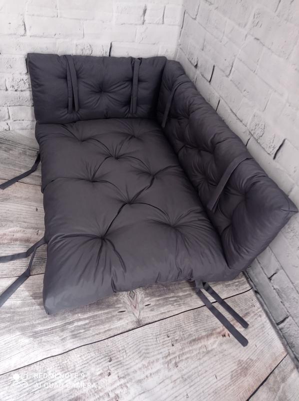 Власне виробництво Ми виготовляємо подушки для: піддонів, гойдалки, коконів, лаунж зони, садових меблів та інше. Відшиваємо за індивідуальними розмірами. Виготовляємо із різного наповнювача: холлофайбер, поролонова крихта, синтепон, поролон. Також є різні тканини, в асортименті: водовідштовхувальна, велюр, замша, еко шкіра, габардин, рогожка. Великий вибір кольорів на будь-який смак. Матеріал: Тканина габардін Наповнювач: еко холлофайбер+ поролонова крихта Рекомендації по догляду: ручний догляд: пилососити меблевою щіткою