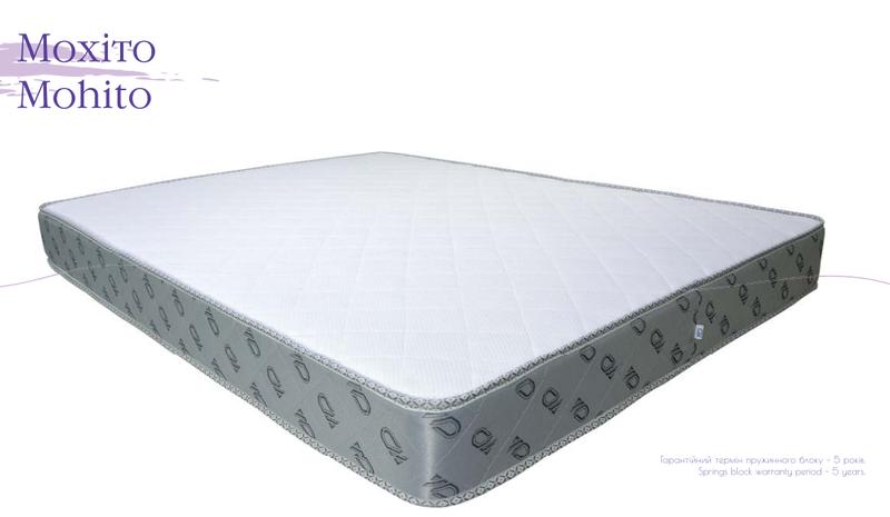 Двухсторонний матрас Мохіто. Отличный двухсторонний пружинный матрас на пружинном блоке с функцией зима- лето. Для качественного сна в матрасе используется биофоам и натуральный латекс. Пружинный блок POCKET SPRING и усиленная прошивка чехла в разы увеличат срок службы матраса. - Рівень жорсткості (від 1 до 5): 2 - Рекомендоване навантаження, кг: 110 Висота матраца, см:19