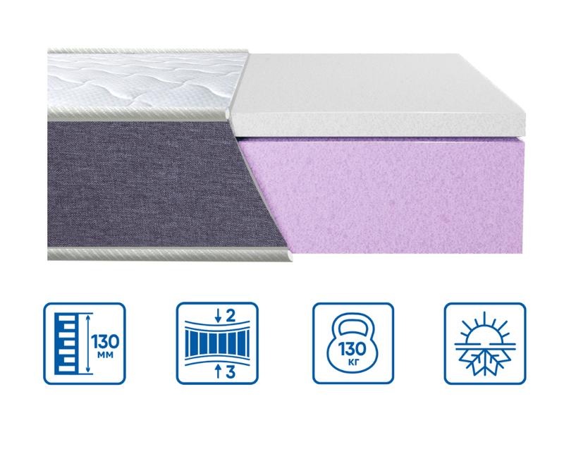 Модель BRAVE "memory" Модель имеет разную жесткость с разных сторон, подойдет для тех, кто ищет качественный беспружинный бюджетный матрас с материалом мемори. Чехол изготовлен из качественной трикотажной ткани, имеющей глубокую прошивку на объемном наполнителе. Борт матраса выполнен из сверхпрочной ткани «GRAY». Внутреннее наполнение состоит из монолитной основы из высококачественной пены «FLEXI» европейского происхождения и материала мемори с одной стороны. Имеет эффект зима-лето. Матрас выполнен из качественного экологически чистого материала, не вызывающего аллергических реакций. За тканью матраса легко ухаживать, не требуется специальных приспособлений. Ткань дышит, максимально пропускает воздух. Матрас выдерживает различные нагрузки. Благодаря отдыху на таком матрасе можно предотвратить боли в спине и искривление позвоночника. Комфортный сон в удобном положении на специальном матрасе – удовольствие и здоровье.