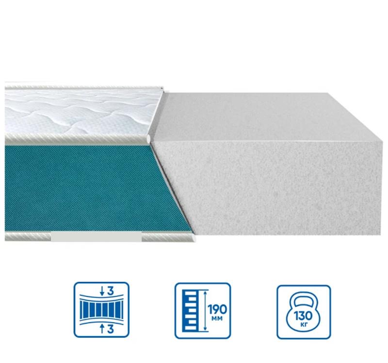 ПРЕИМУЩЕСТВА МАТРАЦА FRESH FOAM: Эта модель подойдет для тех, кто ищет качественный бюджетныйбеспружинный матрас. Матрас имеет одинаковую жесткость с обеих сторон, чехол из качественной жаккардовой ткани. Борт матраса выполнен из сверхпрочной ткани. Внутреннее наполнение состоит из монолитного основания из высококачественной пены «FLEXI» европейского происхождения. Матрас имеет массу преимуществ: - ортопедический и анатомический эффект - экологически чистый - циркуляция воздуха - резинки-фиксаторы по углам - гарантия 18 месяцев ИСПОЛЬЗУЕМЫЕ МАТЕРИАЛЫ В МАТРАКЕ SPRING FOAM: Для изготовления изделия использованы следующие наполнители и ткани: - Синтефлекс— материал, находящийся по конструкции под тканью чехла, предназначен для беспрепятственной циркуляции воздуха. Благодаря объемной структуре, создает воздушную подушку между телом человека и наполнителями, тем самым повышая комфорт спящего человека. - Спанбонд— материал, прикрепляющийся к чехлу с внутренней стороны, для повышения эксплуатационных свойств конструкции чехла. - Эластичная пена - дышащая пена с безупречной пропускной способностью воздуха, не задерживает в себе влагу, обладает превосходными поддерживающими свойствами, благодаря ее эластичности и упругости очень хорошо поддерживает тело в правильном положении. Регламентированная высота матраса – 19 см. Рекомендованная нагрузка модели – до 130 кг. на односпальное место. Жесткость средняя. Гарантия – 18 мес.