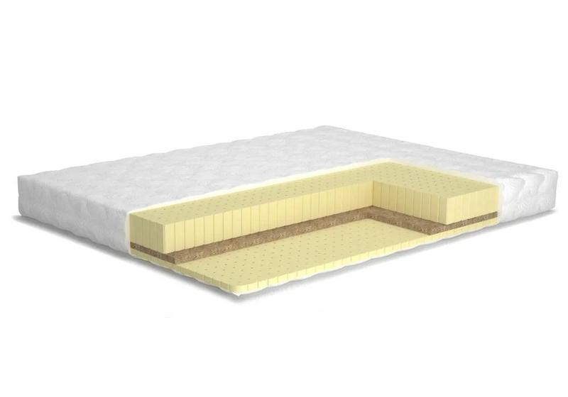 ПРЕИМУЩЕСТВА МАТРАСА ЛАТЕКС ДУАЛ НЬЮ: Матрас Latex dual new — беспружинная модель ТМ Latex&Kokos.; Благодаря комбинации латекса и кокосовой койры, поверхность изделия обладает невероятным комфортом. Две его функциональных стороны можно использовать поочередно, в зависимости от времени года или личных предпочтений. Одна сторона мягкая, а вторая — средней жесткости. Матрас имеет и другие достоинства: 1. Экологическая чистота и безопасность. 2. Ортопедический эффект и анатомичность. 3. Устойчивость к появлению болезнетворных бактерий. 4. Воздухопроницаемость и гигроскопичность. 5. Надежность и долговечность. ИСПОЛЬЗОВАНЫЕ МАТЕРИАЛЫ ЛАТЕКС ДУАЛ НЬЮ: - Натуральный латекс. Наполнитель из млечного сока бразильской гевеи. В меру мягкий и упругий, хорошо держит форму. Не имеет питательной среды для появления пылевых клещей и вредоносных микроорганизмов. - Кокосовая койра. Материал из натурального кокосового волоса. Обладает упругостью, жесткостью и долговечностью. Не поддается гниению и не деформируется с течением срока службы. - Жаккард. Высокоплотная ткань с жаккардовым переплетением нитей. Не поддается истиранию, хорошо держит форму и имеет приятные тактильные свойства. Предлагаем купить матрас Latex dual new и ощутить максимальное удовольствие от хорошего и качественного сна и отдыха.