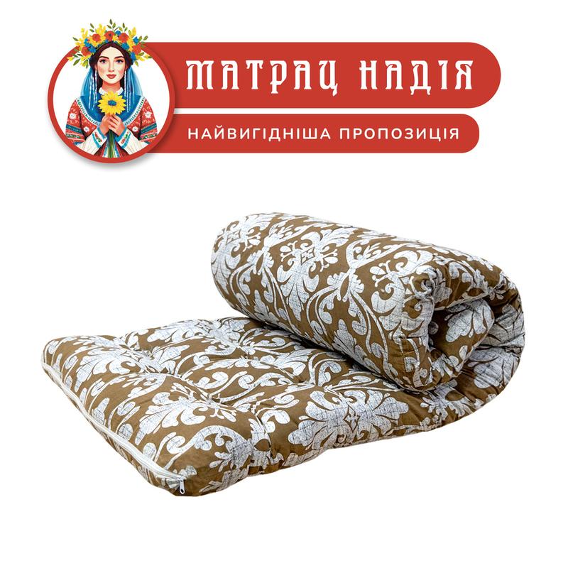 Матрас ватный "Надежда" – с наполнителем из регенерированного волокна и ватина, толщиной до 10 см. Чехол из поликоттона (50 г/м²) делает матрас мягким, упругим и хорошо сохраняющим тепло. Подходит для гостиниц, больниц, съемных квартир, хостелов, туризма и походов. Материалы: Поликоттон (50 г/м²) – сочетает хлопок и полиэстер, обеспечивая комфорт и долговечность. Регенерированное волокно – переработанный текстиль, сохраняющий свойства традиционной хлопковой ваты.
