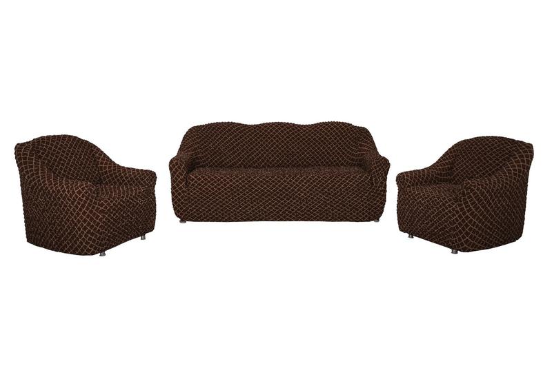 Чехол натяжной на диван и 2 кресла без оборки milano узор коричнево-бежевый