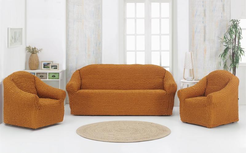 Чехол натяжной на диван и 2 кресла без оборки milano рыжий