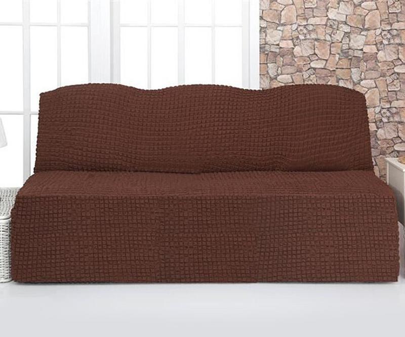 Чехол для мебели Naperine диван жатка без подлокотников и оборки Размер чехла на диван: - Ширина посадочных мест 150-200 см (трехместный) . - Глубина посадочных мест 70-80см. - Высота спинки от посадочного места 70-80 см. Фиксация происходит при помощи канатиков, которые удерживают чехол на диване, благодаря чему он не съезжает и не скатывается. Тем самым обеспечивается максимальное облегание чехла по модели дивана или кресла. Крэш - это немнущаяся гофрированная ткань. На ней имеются многочисленные складки, созданные промышленным способом под прессом. Это не только придает чехлам необычный, и в то же время опрятный вид, но и позволяет использовать их достаточно долго, пока не возникнет необходимость в стирке. В то время как обычную ткань приходится часто гладить, чтобы они хорошо выглядели. И если обычные чехлы одевают на мягкую мебель только в торжественных случаях, то изделия, пошитые из крэш можно использовать ежедневно. Это открывает большой простор для творчества. Так, например: - Вы можете полностью изменить интерьер комнаты только тем, что наденете чехлы на мягкую мебель. Если запастись несколькими комплектами разного фасона и цвета, то можно менять обстановку хоть каждую неделю. - Если комната меблирована разноплановой мягкой мебелью, то при помощи ткани можно легко объединить ее в единый ансамбль. А это сразу же положительно скажется на интерьере. - Если обивка диванов и кресел нуждается в ремонте, то тоже помогут чехлы. Они скроют все изъяны, и гарнитур будет выглядеть так, будто он только что из магазина. Это важно! Имейте в виду, что чехлы подойдут для вашей мебели только тогда, когда на ней нет подлокотников. Подходит для дивана - книжки! - Сушка в стиральной машине: не сушить в стиральной машине - Химчистка: запрещено использование отбеливателей - Стирка: машинная стирка при температуре не выше 40 градусов без использования отбеливающих и хлорсодержащих моющих средств - Отжим: деликатный - Глажка: при средней температуре утюга - Упаковка: сумка на змейке с ручкой