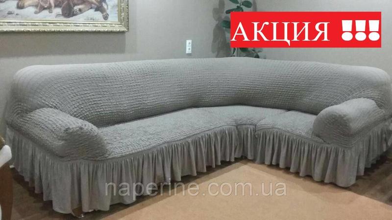 Чехол натяжной с рюшем на угловой диван в подарок чехол на кресло milano серо-голубой