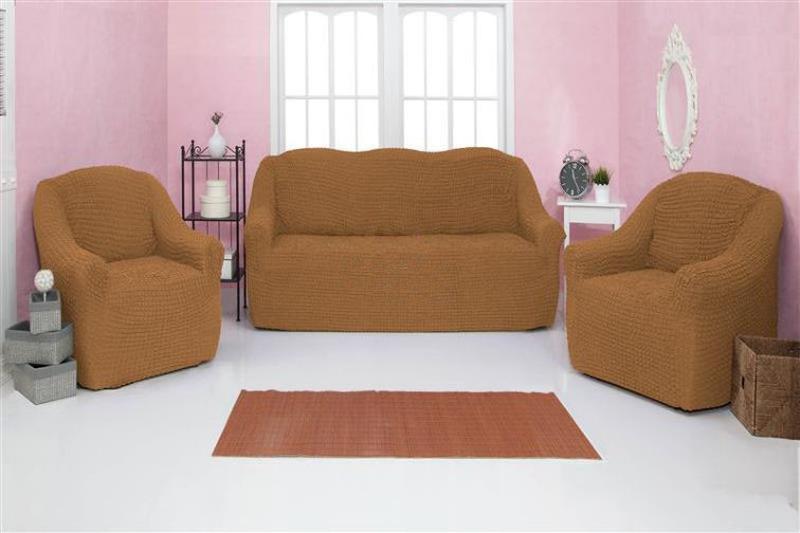 Чехлы на диван и два кресла натяжные без оборки (универсальные) venera 07-219 горчица(ps)