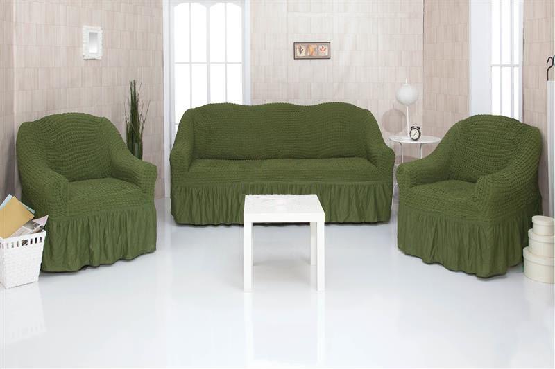 Чехлы натяжные на диван 3-х местный и два кресла venera 01-222 (универсальные) зелёный(ps)