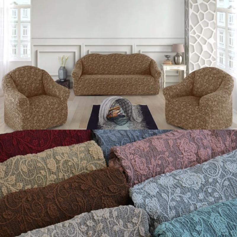 Съемные чехлы на кресла и диваны жаккард без юбки, чехлы на мебель без оборки натяжные стильные Песочный Кayra Разние цвета и узори Хотите защитить мебель от износа? Одевайте чехлы за 5 минут! Это идеальное решение за минимальные деньги. Эти элегантные наборы чехлов помогут защитить вашу мебель от износа, дадут ей вторую жизнь и просто значительно украсят ваш интерьер. Они являются универсальными натяжными чехлами, отлично садятся и принимают форму любой мебели. Чехлы на диван и два кресла Чехол на диван -1 шт. Размеры: ● Ширина дивана 160-250 см. ● Высота спинки от посадочного места 30-80 см. ● Ширина подлокотников 5-35 см. Чехлы на кресла -2 шт. Размеры: ● Ширина кресла 70-95 см. ● Высота спинки кресла, от посадочного места 30-80 см. ● Ширина подлокотников 5-35 см Валики - фиксаторы входят в комплект. Не только покрывают мебель но и создает эффект обивки. Очень красивая и приятная на ощупь жаккардовая ткань. Очень элегантный орнамент. Страна производитель: Турция Turkey. Внимание! Перед онлайн-оплатой желательно уточнять наличие товара у менеджера. Реальные цвета изделий могут отличаться от цветов и оттенков на Вашем экране, это зависит от настроек и передачи цвета Вашего гаджета.