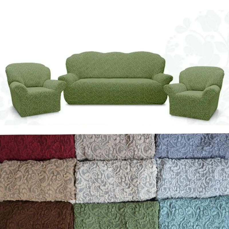 Чехлы для диванов и кресел натяжные жаккардовые без оборки, чехол для дивана и кресла съем...