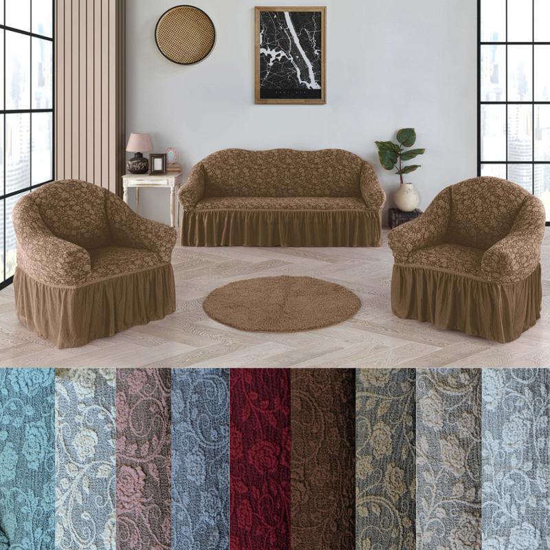 ## Съемные чехлы на кресла и диваны натяжные с оборкой , накидки на диван и кресла стильные жаккардовые Бежевый Roza Кayra Хотите защитить мебель от износа? Одевайте чехлы за 5 минут! Это идеальное решение за минимальные деньги. Подробности Тип рисунка: узор Материал: жаккард Особенности: с юбкой Упаковка: фирменная сумка на змейке с ручкой Производитель: Турция Эти элегантные наборы чехлов помогут защитить вашу мебель от износа, дадут ей вторую жизнь и просто значительно украсят ваш интерьер. Они являются универсальными натяжными чехлами, отлично садятся и принимают форму любой мебели. Чехлы на диван и два кресла Чехол на диван -1 шт. Размеры: ● Ширина дивана 160-250 см. ● Высота спинки от посадочного места 30-80 см. ● Ширина подлокотников 5-35 см. Чехлы на кресла -2 шт. Размеры: ● Ширина кресла 70-95 см. ● Высота спинки кресла, от посадочного места 30-80 см. ● Ширина подлокотников 5-35 см Валики - фиксаторы входят в комплект. Не только покрывают мебель но и создает эффект обивки. Очень красивая и приятная на ощупь жаккардовая ткань. Очень элегантный орнамент. Страна производитель: Турция Turkey. Внимание! Перед онлайн-оплатой желательно уточнять наличие товара у менеджера. Реальные цвета изделий могут отличаться от цветов и оттенков на Вашем экране, это зависит от настроек и передачи цвета Вашего гаджета.