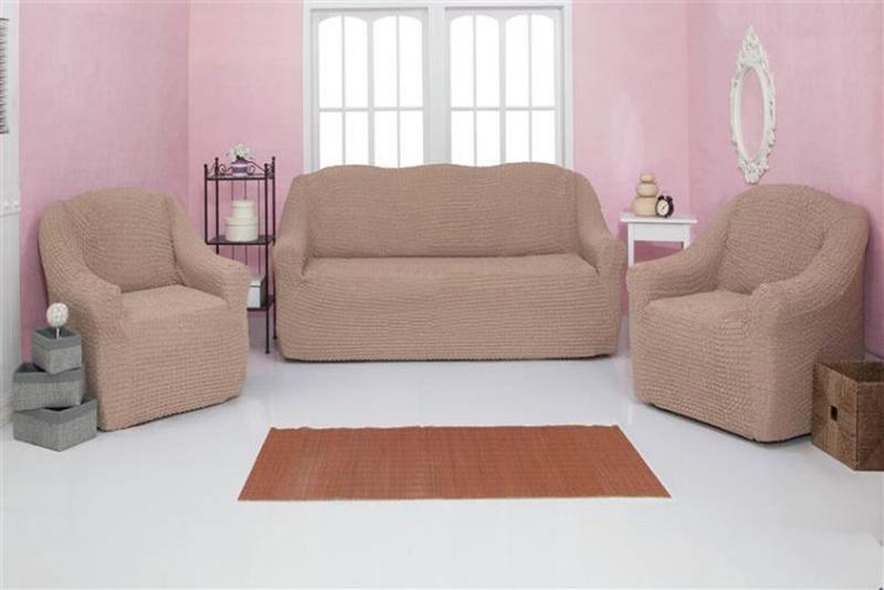 Чехлы для мебели milano диван и два кресла жатка без оборки (3+1+1) капучино