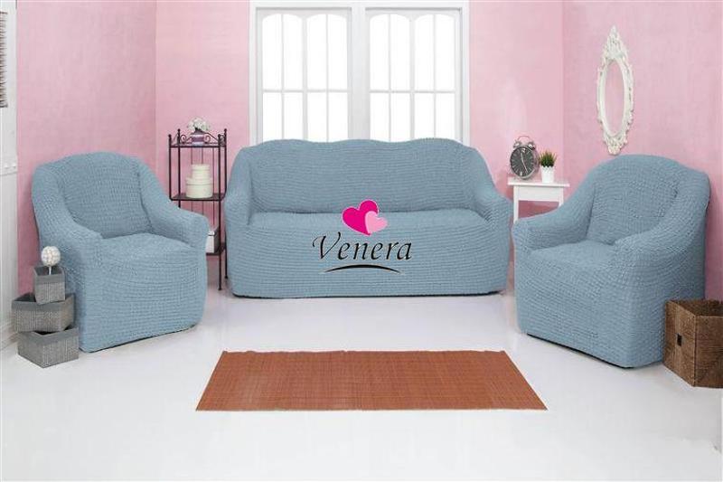 Чехол натяжной на диван и 2 кресла без оборки donna серо-голубой турция 215