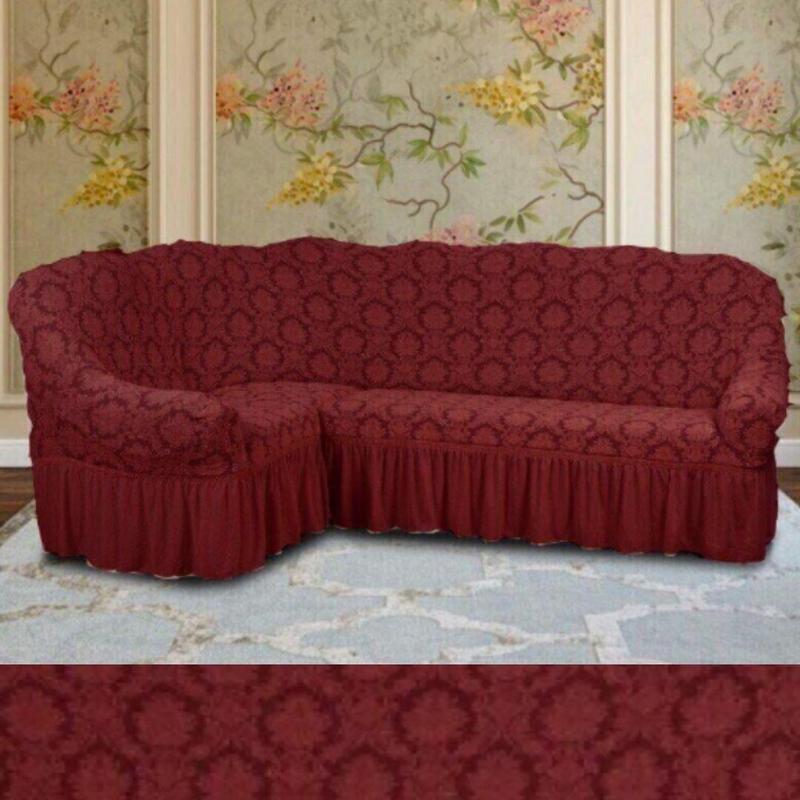 Натяжные чехлы на угловые диваны накидка, еврочехол на угловой диван разные цвета бордовый