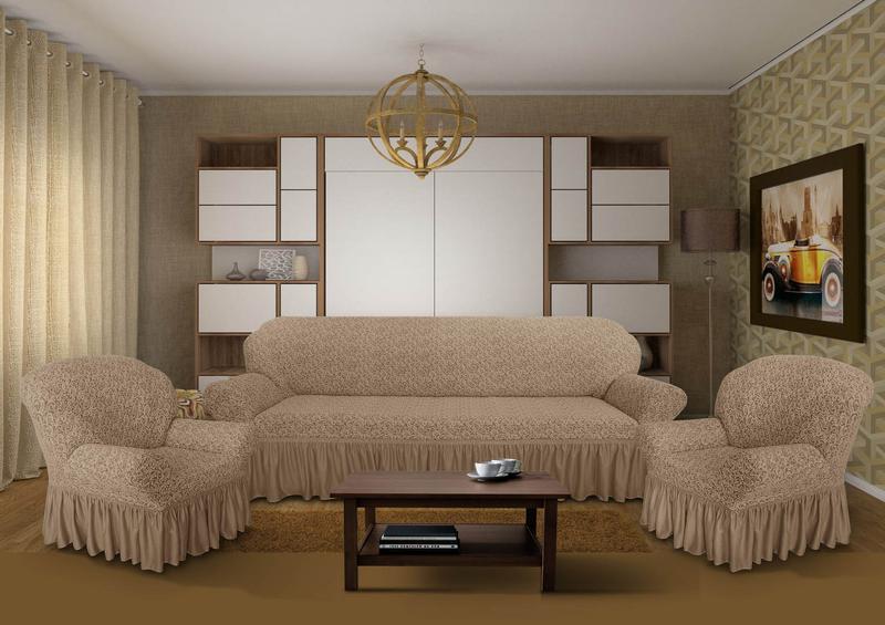 Жаккардовый чехол на диван и 2 кресла kayra без юбки, бежевый