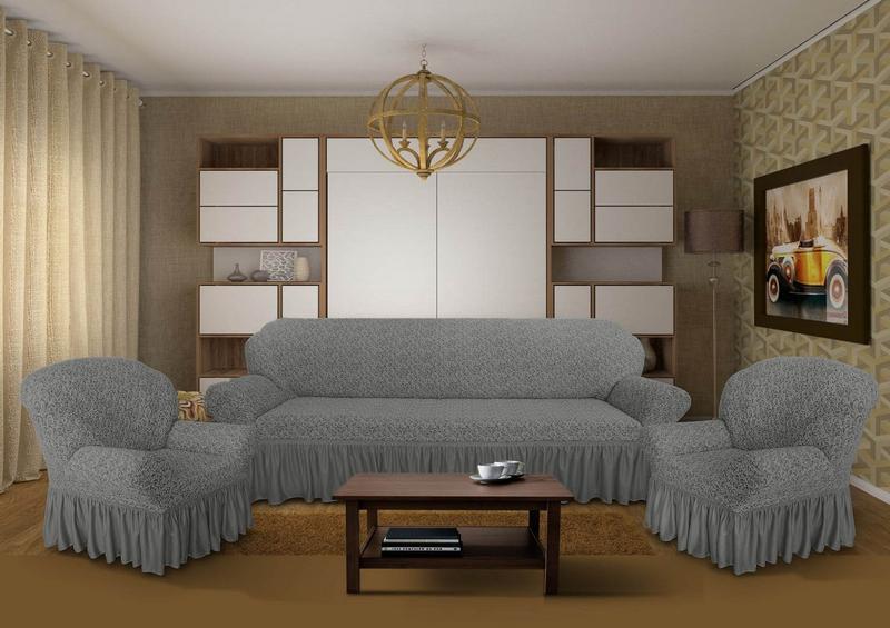 Жаккардовый комплект универсальных натяжных чехлов на диван и 2 кресла