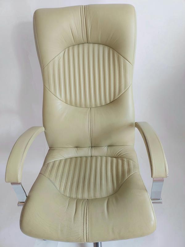 Кожаное кресло, оливкового цвета. Было в использовании. Обладает легкой потертостью, механизмы поднятия-нахила, крестовина с роликами, работают идеально.