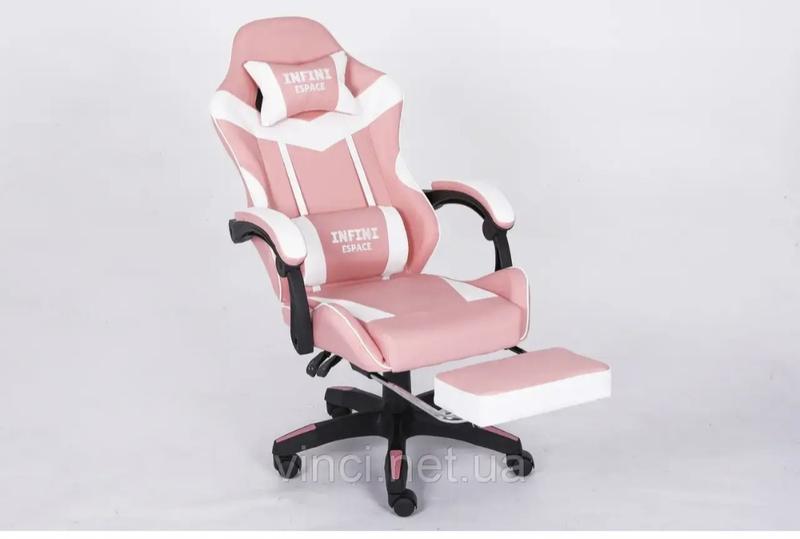 Компьютерное кресло с подставкой для ног + 2 подушки infini espace розово-белое