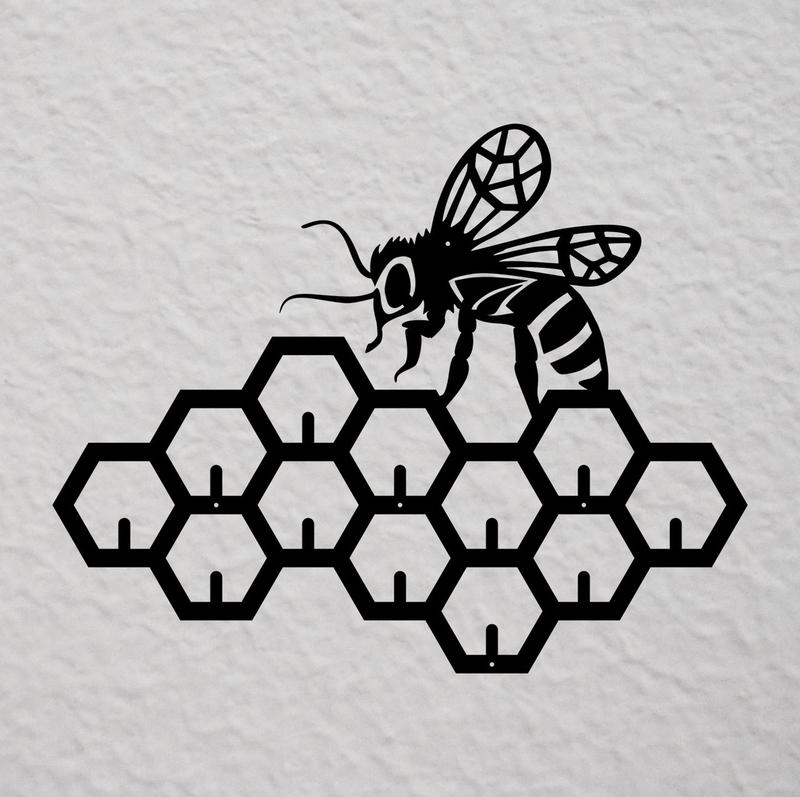 Вешалка для одежды Соты №2 с пчелой" сделана из металла 2 мм, цвет черный, краска порошковая в два слоя. В комплекте: 1) Вешалка на 12 крючков; 2) Саморезы с дюбелями и заглушками. Размеры 60 и 80 см длиной, возможно изготовление по вашим размерам или любую другую модель. Все товары тут. Мой инстаграм: ****************************