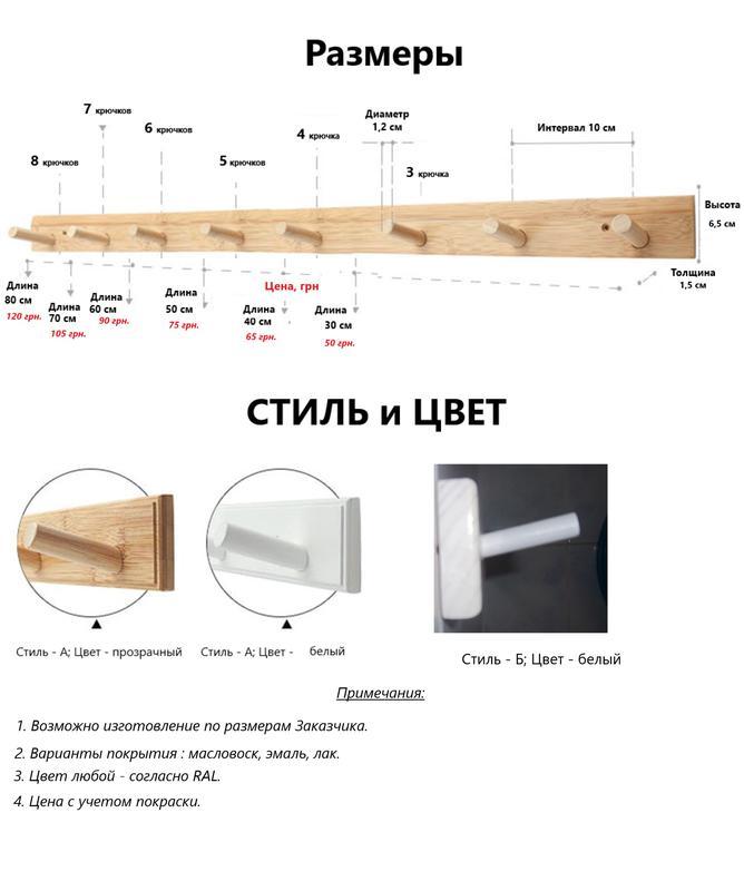 Виробник: Власне виробництво Тип меблів: Вішалки для одягу Колір меблів: Дуб Матеріал корпусу: Дерево Матеріал фасаду: Дерево Кілька примірників у наявності Вешалки из дерева в прихожую, ванну, кухню, комнаты, в доме, офисе, кафе и т.д. Изготавливаем вешалки из твердых пород дерева: дуб, ясень, дуб красный, бук. Если Вам нужны другие параметры вешалки -пишите в чат и я выставлю ее отдельной позицией. Возможные характеристики: Ширина планки вешалки: 6,5 см. Длина планки : 40 см. Количество крючков: 3 штук. Диаметр крючков : 1 см. Варианты крепления к основанию : саморезы, дюбеля (входят в комплект), или клей (не входит в комплект поставки) .