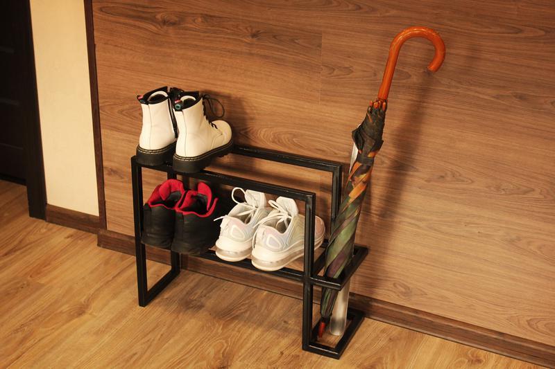 Секрет просторого розміщення взуття в невеликому передпокої - це покупка полки для взуття. А якщо там ще і буде відсік для парасольки - це буде відмінним варіантом. Полка для зберігання парасольок і взуття, виготовлена командою mda-store - ідеальний аксесуар для будь-якого передпокою. Вона має сучасний дизайн і міцні полки, які не деформуються під навантаженнями, так як зроблена з металу. Даний виріб - це довговічна покупка, яка відмінно виглядає в сучасному або класичному стилі передпокою. Полка не займає зайвого місця, але відрізняється високою місткістю. Високий бічний відсік відмінно підходить для зберігання парасольок. Відкритий тип виробу дозволить не накопичувати запахи в квартирі, провітрювати і висушувати взуття відразу на полицях. Металева поверхня є міцним і вологостійким матеріалом, що робить полку безпечною для мокрого взуття та парасольок. Серед інших переваг: легко очищається робоча поверхня; ергономічність і функціональність. Стандартні розміри полиці: 60х20х44 см. Метал 2х2 см. Ми можемо виготовити полку в будь-якому розмірі (попередньо обговоривши всі деталі). Покриття: порошкове! Колір металу - чорний. Виготовлено в Україні.