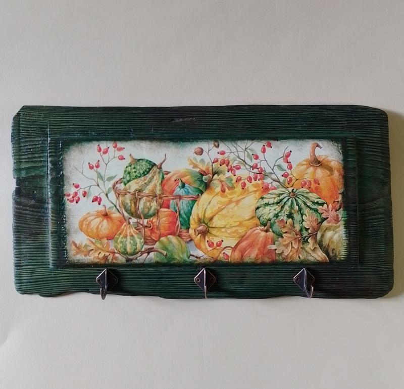Панно из старой ставни. Брашированное, тонированное, покрытое восками, декорированное в технике декупаж. Еще долго прослужит ключницей, или вешалкой для полотенец. При встрече дарит тепло и уют. Очень эксклюзивная вещь. Имеет сколы, неровности, образующиеся на старых вещах с течением времени. Размер 46,5х23,5см.