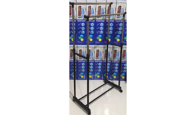 Трубки стійки Double Pole Clother Hose виготовлені з алюмінію, порожнисті всередині, тому стійка навіть у складанні важитиме не більше 1,5 кг. Пластикові заглушки на кінцях труб, що випирають, зібраної конструкції, захистять одяг і запобігають випадковому падінню одягу якщо він буде просто накинутий на стійку. Великим плюсом стійки для одягу Double Pole Clother Hose є наявність невеликих коліщатків, завдяки яким Ви зможете пересунути стійку навіть повністю завішаний одягом. Стійка Double Pole Clother Hose виконана двоповерховою, для впорядкування і нормального, компактного, розміщення одягу на ній. Бічні поперечні планки зручні для розміщення на них, наприклад, випрасуваних штанів. Найкраще для стійки використовувати вішалки, так що одягу можна розмістити в рази більше. Переваги стійки для одягу Double Pole Clother Hose: Достатньо габаритна, для розміщення більшої кількості одягу; Компактна, у глибину, для збереження простору; Має легку вагу; Легка та досить швидка збірка; Не потребує використання додаткових інструментів (тільки руки); Завдяки коліщаткам - легко транспортується навіть завантаженою; Подвійна стійка; Поперечні невеликі перекладини; У нижній частині стійки – невелика поличка для взуття; Пластикові заглушки на труби. Характеристики стійки для одягу Double Pole Clother Hose: Висота регулюється; Висота: мінімальна 95 см; максимальна 157 см; Ширина: 78 см; Глибина: 42 см; Вага: 2,5 кг. Комплектація: 6 великих труб діаметром 25 мм; 4 середніх труб, діаметром 22 мм; 2 малі труби, діаметром 19 мм; 6 маленьких коротких трубочок, діаметром 22 мм; 2 ніжки-стійки (пластикові); 4 колеса (кріпляться за бажанням); 8 Т-подібних кріплень; 4 заглушки; Картонна коробка для перенесення та зберігання