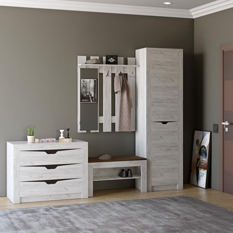 Прихожая эверест либерти 4 (модульная - 5 элементов) шкаф-пенал левый, дуб крафт белый (dt...