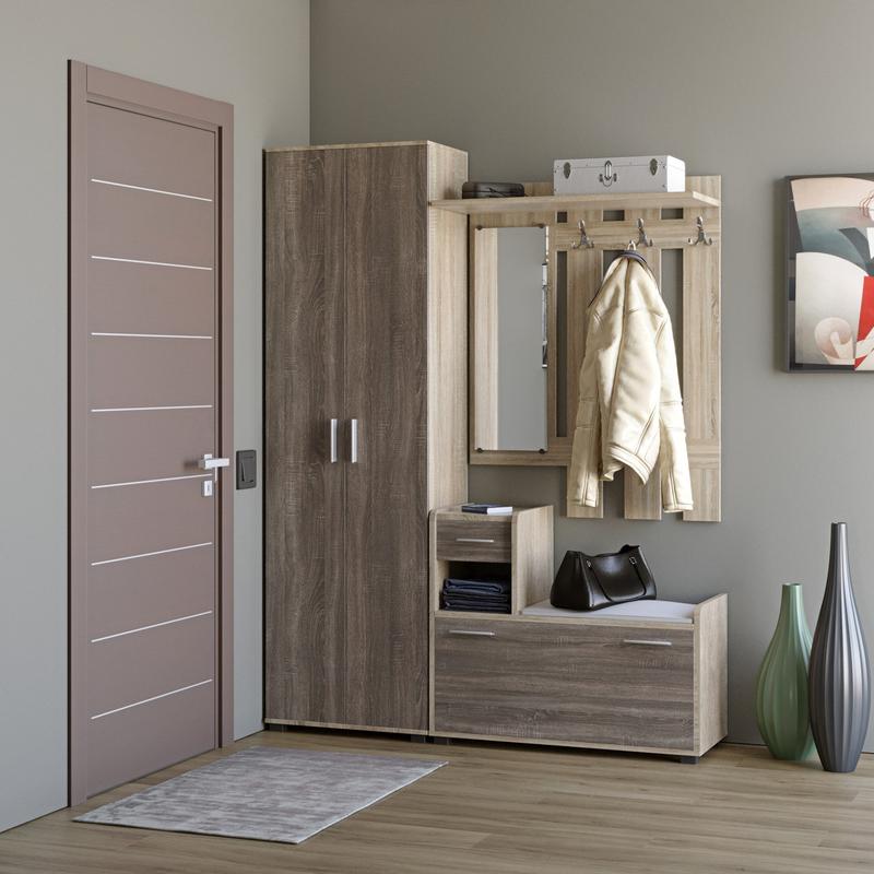 Прихожая эверест тандем с распашным шкафом шп-1 и тумбой (левая) сонома + трюфель (dtm-249...