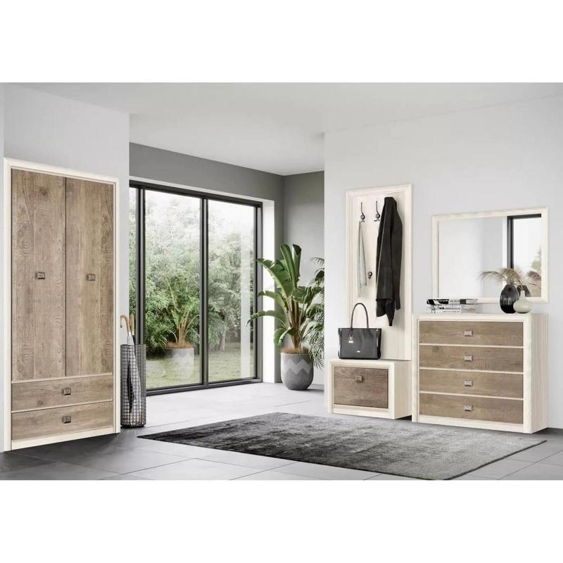 Набор мебели в прихожую ВМК (БРВ) Коэн 2 N77820 Сосна аризонская + Дуб корабельный Набор мебели для прихожей Коэн 2 N77820 - выразительное сочетание дизайна и функциональности. Изготовлено из ДСП лиственного дерева под цвета аризонской сосны и корабельного дуба, этот набор почти воплощает в себе дух современного стиля и свежести природы. Набор от фабрики ВМК (БРВ) из Украины принадлежит к коллекции Коэн и включает все необходимое для удобства и комфорта вашей прихожей. Набор состоит из модулей: Шкаф распашный с ящиками ВМК (БРВ) Коэн 2 SZF2D2S Сосна аризонская + Дуб корабельный (GRB-1783) - 1 шт. Двухдверный с двумя ящиками. Внутри расположена штанга для вешалок. Используются роликовые направляющие и петли Hettich. Длина: 103,5 см Высота: 200,5 см Глубина: 56,5 см Тумба для обуви ВМК (БРВ) Коэн 2 BUT1D Сосна аризонская + Дуб корабельный (GRB-2003) - 1 шт. Однодверная. Длина: 70,5 см Высота: 49 см Глубина: 35 см Вешалка настенная ВМК (БРВ) Коэн 2 WIE/70 Сосна аризонская (GRB-1790) - 1 шт. Настенная. Длина: 70 см Высота: 160 см Глубина: 4 см Зеркало настенное ВМК (БРВ) Коэн 2 LUS103 Сосна аризонская (GRB-1777) - 1 шт. Настенное. Длина: 103,5 см Высота: 78,5 см Глубина: 2,5 см. Комод в гостиную ВМК (БРВ) Коэн 2 KOM4S (телескопы) Сосна аризонская + Дуб корабельный (GRB-1503) - 1 шт. С четырьмя ящиками. Используются роликовые направляющие. Длина: 103,5 см Высота: 93,5 см Глубина: 40 см В этот комплект входит вместительный двухдверный платяной шкаф с дополнительными полками и секцией для вешалок. Для обуви предусмотрена тумба с надежной металлической ручкой. Вешалка представляет собой качественную и удобную конструкцию для хранения верхней одежды. Зеркало визуально расширяет пространство и добавляет света. Комод с четырьмя ящиками идеально подойдет для хранения различных вещей. Набор мебели Коэн 2 N77820 подчеркнет индивидуальность вашего дома и станет надежным помощником в организации уюта и порядка в прихожей.
