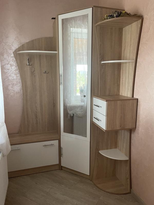 Продам функциональный и стильный угловой шкаф прихожей. Красивый дизайн и универсальная расцветка. Эргономичность, функциональность, практичность. Много пространства для хранения вещей. Размеры указанные на фото. Цена 4000 грн По детальной информации включайте по тел.**********