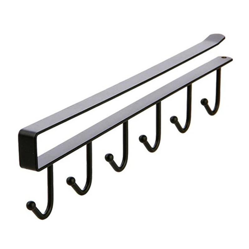 Вешалка подвесная на полку для посуды одежды, 6 крючков, металл, черная