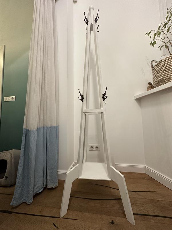 Вешалка белая деревянная напольная выполнена под заказ, много крючков. Состояние красивое, видно на фото. Все дополнительные вопросы пишите в личные.