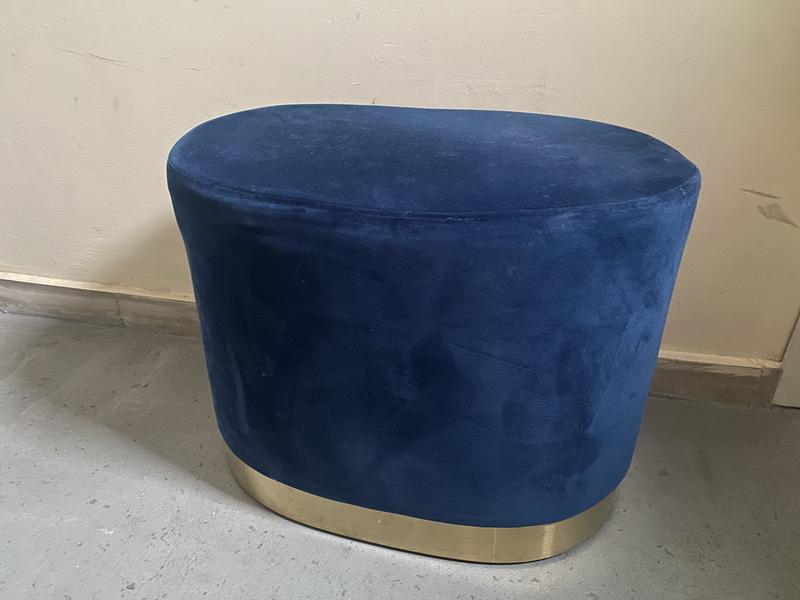 Синя банкетка в коридор. Зламана основа (видно на фото зверху), але її можна поремонтувати.