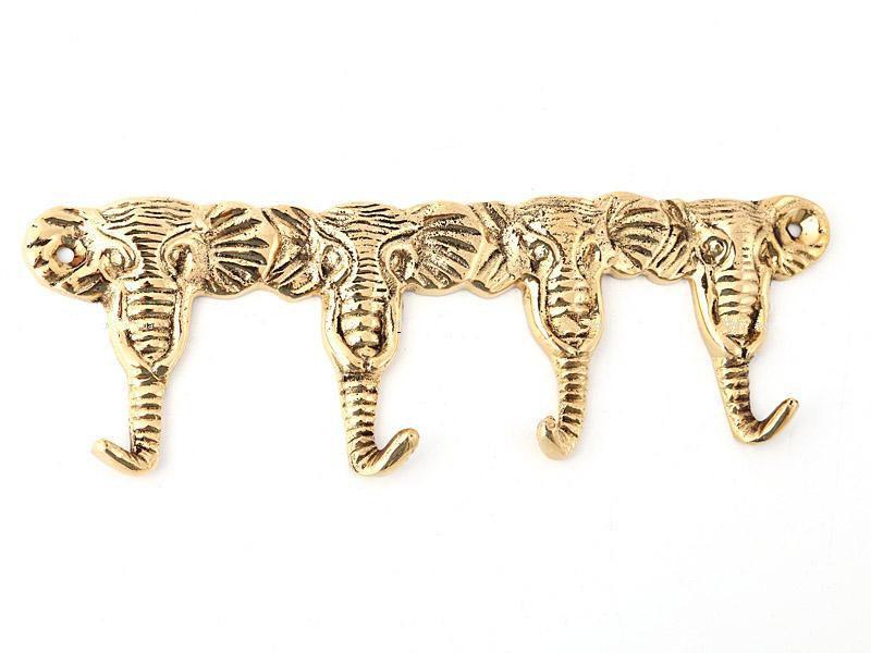 Вешалка настенная слоники 20х7 см латунь
